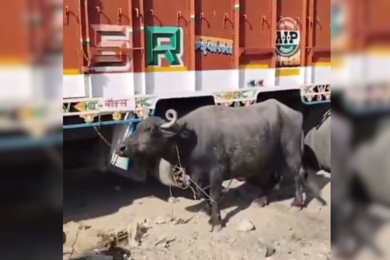 पुलिस ने भैंस का वीडियो बनाया, सोशल मीडिया पर डाला