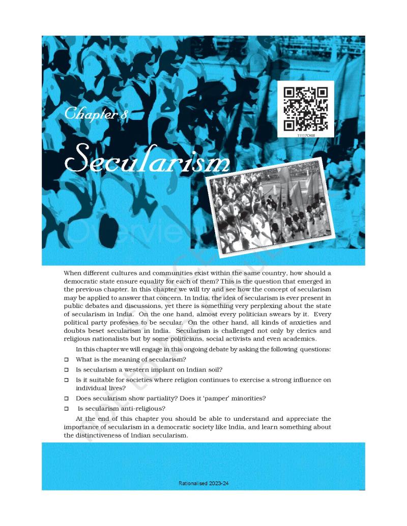 - सरकारी कार्यालयों में धार्मिक अनुष्ठान का आयोजन करना।5. बॉम्बे, गर्म हवा या इस विषय से जुड़ी कोई फिल्म देखें। इन फिल्मों में धर्म निरपेक्षता के किन आदर्शों को दिखाया गया है।