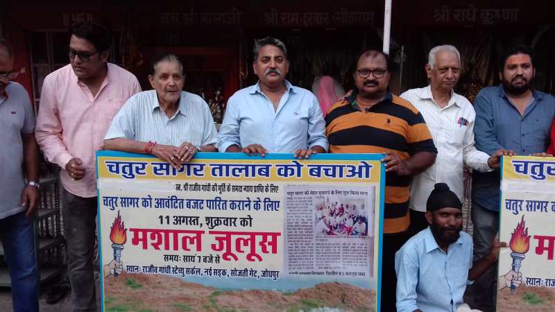 जोधपुर. चतुर सागर बचाओ अभियान को गति देने के लिए 11 अगस्त शाम को सोजती गेट स्थित राजीव गांधी प्रतिमा के पास मशाल प्रदर्शन किया जाएगा। सोमवार को मशाल जुलूस की अपील के पोस्टर का विमोचन किया गया।