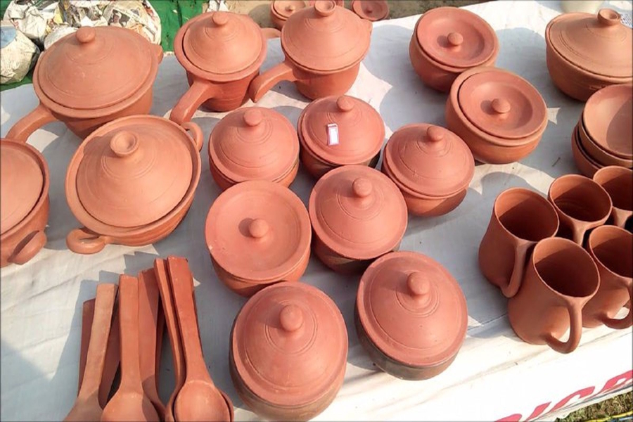 युवा उद्यमी देवराज सोलंकी ने बताया कि गुजरात, महाराष्ट्र, दिल्ली, मप्र से मिट्टी का इंतजाम करते है। इससे प्रेशर कुकर, डिनर सेट,हॉट डोंगा, बोतल, केसरोल, दाल हांडी, वाइन कप, चाय की केतली से लेकर चम्मच, कटोरी, जग, कप-प्याली, थाली, गिलास सहित बर्तनों की पूरी शृंखला तैयार की गई है। इन बर्तनों की खूबी यह है कि इनमें खाना बनाने पर पकाए जा रहे भोज्य पदार्थ में मौजूद पोषक तत्व नष्ट नहीं होते। धातु के बर्तनों की अपेक्षा मिट्टी के बर्तन में तैयार हुए भोजन में 80 फ ीसदी तक पोषक तत्व रहते है क्योंकि ताप का प्रभाव उन पर सीधे नहीं पड़ता।
