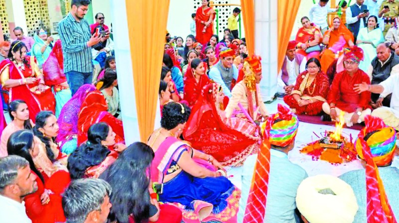 बारात के साथ दूल्हा मघाराम के घोड़ी पर सवार होकर विवाह स्थल पहुंचने पर शुभ मुहूर्त में तोरण की परम्परागत रस्म का निर्वाह किया गया। इसके बाद नव-युगल ने एक-दूसरे के गले में वरमाला डाली। इस दौरान जोड़ों पर गुलाब पुष्प की पंखुरियों की वर्षा होती रही। वहीं आचार्य ने वैदिक मंत्रों और विधि-विधान से सात जन्मों का वचन दिलाते हुए फेरे करवाकर विवाह संपन्न करवाया। इंदु ने पवित्र अग्नि के सात फेरे लेकर गृहस्थ जीवन का सफर शुरू किया। मन उमंगों से तरंगित हुआ तो दिव्यांगता और बचपन का दंश पीछे छूट गया।