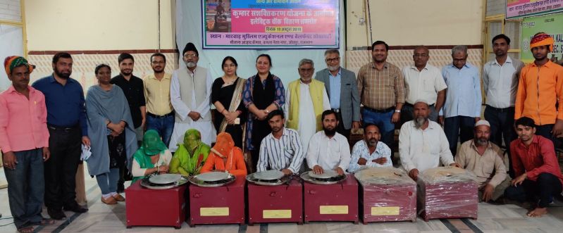 जोधपुर। खादी और ग्रामोद्योग आयोग, सूक्ष्म-लघु एवं मध्यम उद्यम मंत्रालय, कुम्हार सशक्तीकरण योजना के अन्तर्गत मारवाड़ मुस्लिम एज्यूकेशनल एण्ड वेलफेयर सोसायटी जोधपुर के सहयोग से कमला नेहरू नगर स्थित मौलाना आजाद परिसर में चल रहे दस दिवसीय इलेक्ट्रिक चाक प्रशिक्षण व वितरण समारोह का आयोजन किया गया।