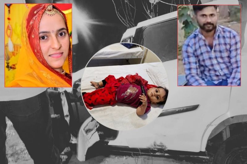 शेरगढ़ थाने के एएसआइ रघुनाथ सिंह चंपावत ने बताया कि राजकीय उच्च माध्यमिक विद्यालय सुभाषनगर राजमथाई में कार्यरत शिक्षक भोजासर पीलवा निवासी गणेशाराम (32) अपनी पत्नी ममता देवी (28) तथा डेढ़ वर्षीय बेटी मानुसी के साथ कार में जोधपुर से लौट रहे थे।