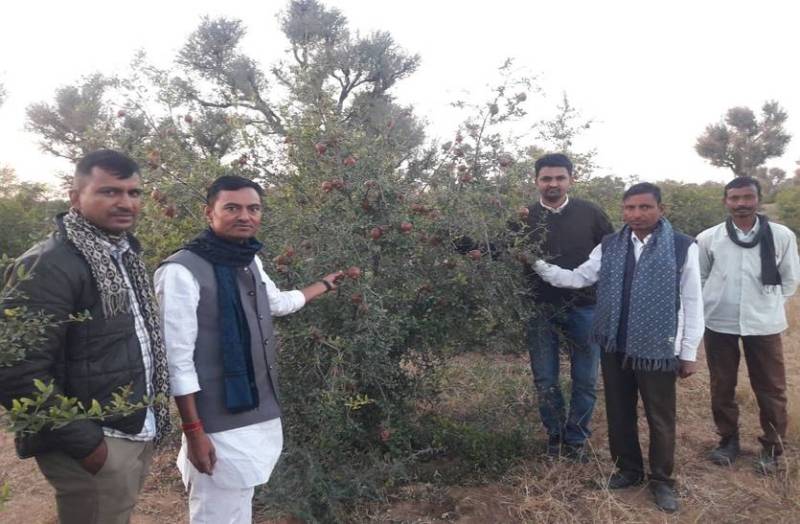 क्षेत्र के अणवाणा के प्रगतिशील किसान सुखदेवसिंह व रामप्रकाश डऊकिया ने अपने फार्म हाउस पर बारिश के पानी का संचय करने के लिए एक फार्म पौण्ड का निर्माण करवाते हुए बूंद-बूंद सिचाई की तकनीक अपनाते हुए खेत में करीब तीन हैक्टेयर में अनार का बगीचा लगाया है। सितम्बर 17 में करीब 2300 पौधे अनार के लगाए, जिसमें से 500 नष्ट हो गए। अब 1800 पौधे फल दे रहे हैं।