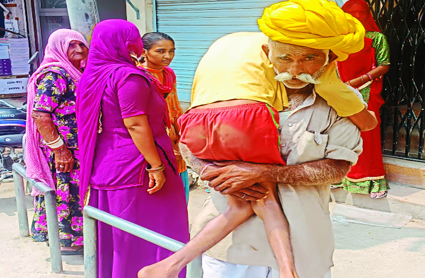 पीपाड़ सिटी। परिस्तियां ना उम्र देखती, ना क्षमता... पीपाड़ सिटी की गलियों में ऐसे हालात से टक्कर लेता नानण गांव निवासी बुजुर्ग गणेशराम देवासी दिखे। पसीने से लथपथ देवासी के कंधे पर उसी का 18 साल का बेटा पाबूराम था। पाबूराम सरकारी दिव्यांगता पेंशन का लाभार्थी है, लेकिन केवाइसी नहीं होने के कारण पेंशन बंद हो गई। अब भौतिक सत्यापन के लिए बैंक तक जाना था। गरीब गणेशराम के पास किराए के वाहन के लिए पैसे नहीं थे। दूसरी ओर सरकार की ओर से ऐसे हालात में सहायता के लिए शुरु सुविधाओं की जानकारी देने वाला भी कोई नहीं था। ऐसे में उसने बेटे को कंधे पर लाद कर केवाईसी के लिए ले जाने की ठानी।