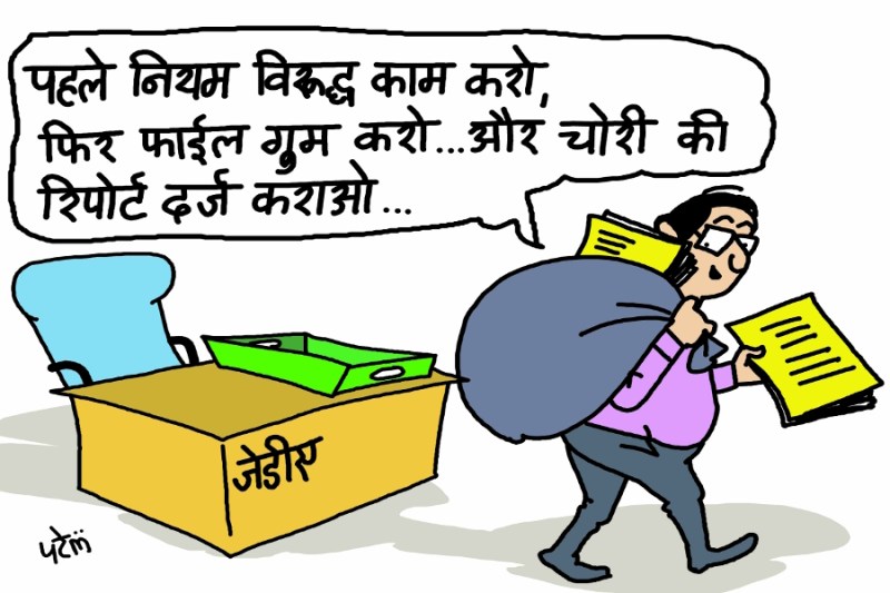 जेडीए में पिछले साल फाइलें चोरी होने के दो प्रकरण दर्ज हुए थे। तब 100 से अधिक पत्रावलियां पार हो गई थी। इसके बाद पिछले माह भी एक प्रकरण रातानाडा थाने में दर्ज हुआ। जिसमें निर्माण शाखा से पत्रावली चोरी होना पाया गया। अब सूचना के अधिकार में प्रकरण जो सामने आया है वह फाइल कृषि भूमि से अकृषि भूमि में 90 ए रूपांतरण कीहै। पहले तो एक साल तक इन प्रकरणों का निस्तारण नहीं होता, जब फाइल घूमती है तो उस पर ऐसे रिमार्क आ रहे हैं जो जेडीए कार्यप्रणाली पर सवाल खड़े कर रहे हैं।