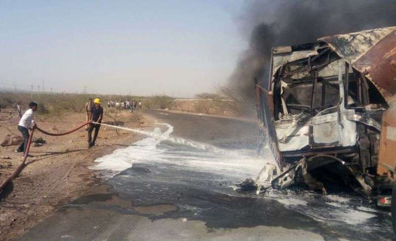 दुर्घटनाग्रस्त ट्रक को लेकर ले जा रही थी क्रेन, चलते ट्रक में लगी आग
