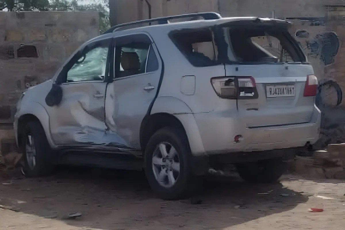 हमले में क्षतिग्रस्त कार। फोटो- पत्रिका
