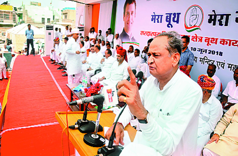 गहलोत ने कहा कि आज देश में झूठे वादे वालों की सरकार है। मुख्यमंत्री वसुंधरा राजे भारी मतों से चुनाव जीत गई और हमारी सारी स्कीमें धरी रह गई। जबकि मैंने अपने कार्यकाल में पिछली सरकार का एक काम नहीं रोका। मुख्यमंत्री के तौर पर अपने कार्यकाल की उपलब्धियां भी उन्होंने गिनाईं।