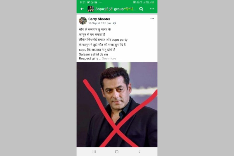 लॉरेंस गैंग के सोपू ने सोशल मीडिया पर दी सलमान खान को मारने की धमकी, फोटो हो रहा वायरल