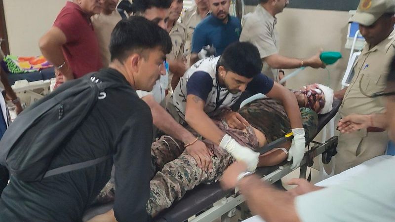 ग्रीन कॉरिडोर बनाकर जोधपुर लाने के बाद कमाण्डो का उपचार करते चिकित्सक।