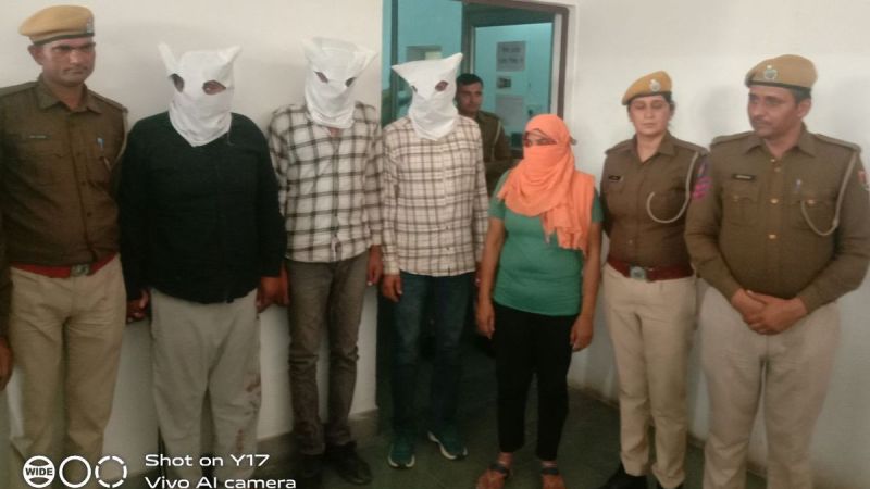 पुलिस की गिरफ्त में महिला व उसके तीन साथी