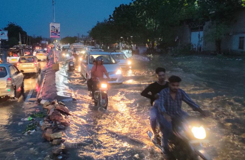 प्रतापनगर नेशनल हैंडलूम के सामने पानी की जैसे नदी चल पड़ी। दफ्तरों से घर लौट रहे लोग बारिश में फंस गए। पानी अधिक भरा होने से दुपहिया वाहन बंद हो गए। करीब 7.30 बजे तक बारिश हुई। मौसम विभाग के अनुसार रात 8.30 बजे तक 8.2 मिमी. बरसात हुई। शहर में मानसून को अभी करीब एक महीना बाकी है। सूर्यनगरी में मंगलवार को न्यूनतम तापमान 25.9 डिग्री रहा। सुबह से मौसम में नमी अधिक होने से उमस व्याप्त हो गई। दिन चढ़ने के साथ उमस का असर बढ़ने लगा।