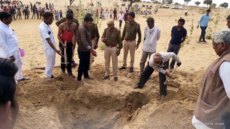 ग्रामीणों की सूचना पर थानाधिकारी इमरान खां मौके पर पहुंचे तथा बुधवार रात्रि को अज्ञात लोगों द्वारा खोदकर भरे गड्ढे को देखा तथा पुलिस मौजूदगी में गड्ढे को खोदा गया जिसमें कुछ नहीं मिला, फिर जेसीबी से खुदवाई की गई, जिसमें पत्थर निकले।