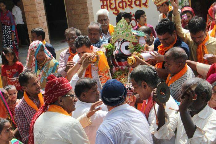 मंदिर के पुजारी ने बताया भगवान जगन्नाथ, माता सुभद्रा तथा बलभद्र देव का श्रृंगार कर उनकी सवारी मधुकेश्वर महादेव मन्दिर से मधुवन क्षेत्र में सभी श्रृद्धालुओं को दर्शन लाभ देते हुए पुन: मन्दिर परिसर में विराजमान हुई।