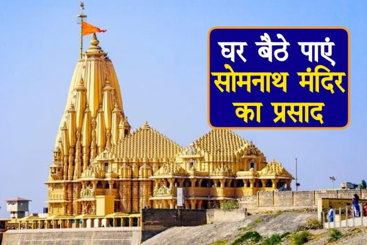 सोमनाथ मंदिर से प्रसाद मंगाने के लिए मैनेजर, श्री सोमनाथ ट्रस्ट, प्रभास पाटन, जिला- जूनागढ़, गुजरात-362268 को 270 रुपए का ई-मनीऑर्डर भेजना होगा। ई-मनीऑर्डर पर प्रसाद के लिए बुकिंग लिखना होगा। प्रसाद में 200 ग्राम बेसन लड्डू, 100 ग्राम तिल की चिक्की और 100 ग्राम मावे की चिक्की रहेगी।
