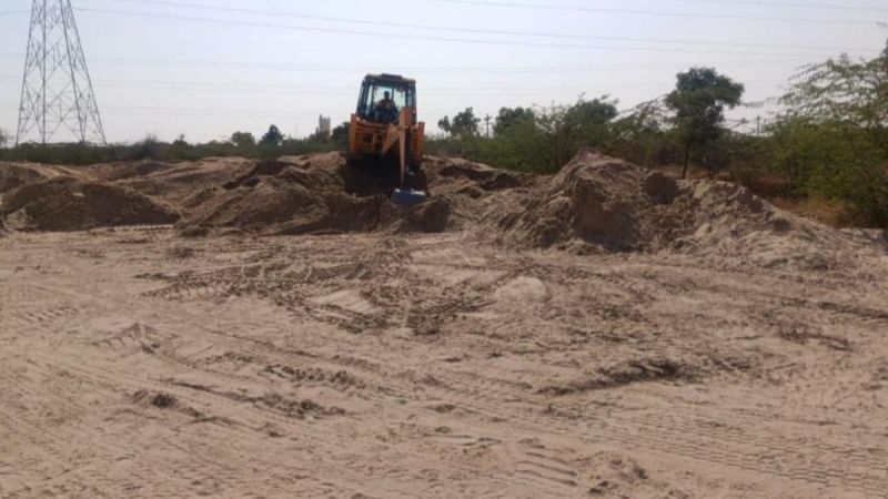 बजरी के अवैध स्टॉक को नष्ट करते हुए