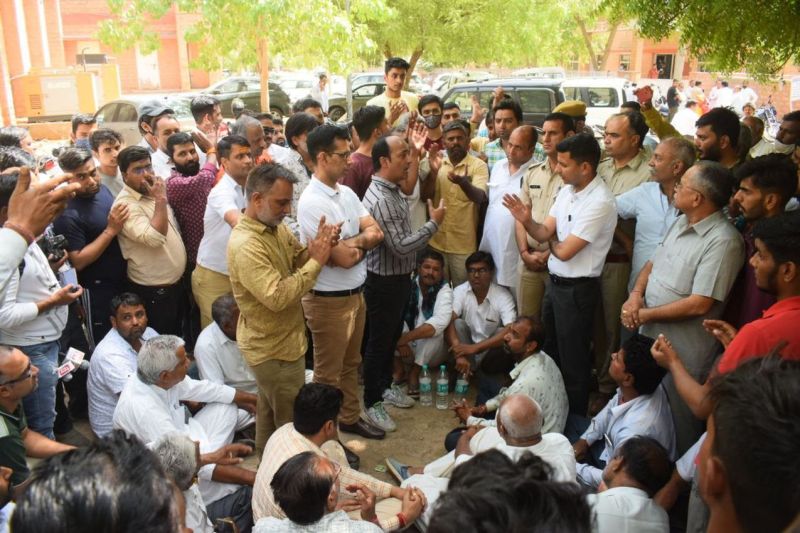 उधर, शुक्रवार सुबह मृतक का शव मथुरादास माथुर अस्पताल की मोर्चरी लाया गया। परिजन और स्वर्णकार समाज के लोग मोर्चरी के बाहर एकत्रित होने लगे। वे दोषी पुलिसकर्मी को निलम्बित करने, आरोपी को फांसी की सजा दिलाने, निष्पक्ष जांच, आरोपी को मृतक के परिवार से एक व्यक्ति को सरकारी नौकरी व मुआवजा देने की मांग की। वे धरना देकर बैठ गए। एडीसीपी हरफूलसिंह व अन्य अधिकारियों ने समझाइश की। आरोपी को पकड़ लेने के सथ ही उच्च अधिकारी के निर्देश्न में निष्पक्ष जांच के आश्वासन पर गतिरोध टूटा। तब मेडिकल बोर्ड से पोस्टमार्टम कराया जा सका।