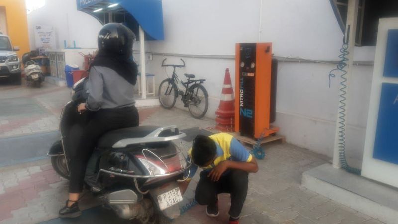 हमनें पंप का ऑर्डर दे दिया है। अगले सप्ताह से वाहन चालकों को फ्री में नाइट्रोजन गैस की सुविधा उपलब्ध होगी।
