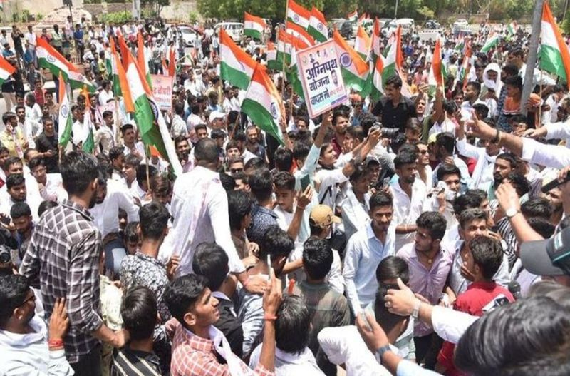 एनएसयूआई प्रदेशाध्यक्ष अभिषेक चौधरी, प्रदेश सचिव अभिषेक मेहता और जिला अध्यक्ष दिलीप चौधरी के नेतृत्व में अग्निपथ योजना के विरुद्ध सैनिक सत्याग्रह पैदल मार्च का आयोजन किया गया। कलक्ट्रेट पर पर प्रदेशाध्यक्ष चौधरी ने छात्र शक्ति को संबोधित करते हुए कहा कि केंद्र सरकार की इस योजना ने युवाओं का भविष्य अंधकारमय बना दिया है। देश की रक्षा के लिए अग्रणी सेना में ठेका पद्दति से भर्ती नहीं होनी चाहिए। जिलाध्यक्ष दिलीप चौधरी ने कहा कि अग्निपथ योजना के बाद देश में और अधिक बेरोजगारी हो जाएगी।