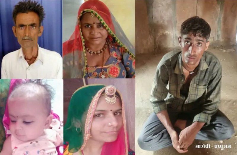 चचेरे भाई हरजीराम उर्फ हरीश व चाचा पूनाराम से बदला लेने के लिए पप्पूराम के सिर पर भूत सवार था। उसने बुधवार सुबह चार बजे सिर्फ 15 मिनट में चाचा पूनाराम, चाची भंवरीदेवी, भाभी धापूदेवी की कुल्हाड़ी के चार वार से हत्या कर दी थी। उसने आगजनी का रूप देने के लिए घर में बने बिस्तरों पर तीनों शव अलग-अलग रखे और घसीटकर झोंपड़े में बनी रसोई में लाया था। केरोसीन छिड़ककर उसने तीनों शव को आग लगा दी थी। फिर पीछे छह माह की भतीजी मनीषा बची तो उसे भी जीवित जलती आग में फेंक दिया था। झोंपड़ी को बंद कर वह घर लौट आया था। उसने सिर्फ 15 मिनट में पूरी वारदात कर दी थी।