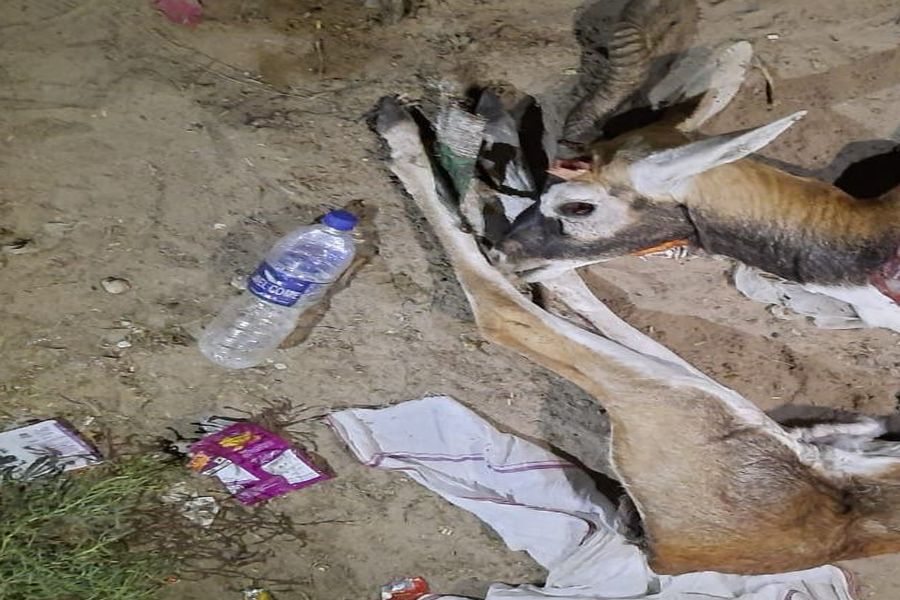जोधपुर. जिले के लूणी थानाक्षेत्र के दूदिया-भाचरणा की सरहद में डेडी नाडी के पास शनिवार देर रात एक काले हरिण शिकार प्रकरण में दो नामजद आरोपियों को गिरफ्तार करने के बाद आरोपियों से दो हिस्सों में बरामद हरिण का तीन सदस्यीय मेडिकल बोर्ड की ओर से पोस्टमार्टम किया गया। काले हरिण शिकार के मामले में ग्रामीणों के सहयोग से देर रात्रि वन विभाग ने दो नामजद आरोपी ओमाराम मेघवाल पुत्र सूजाराम व सुखाराम वाल्मिकी पुत्र सूजाराम निवासी दूदिया-भाचरणा को पूछताछ के लिए हिरासत में लेकर रविवार को गिरफ्तार कर लिया गया। वन विभाग वन्य जीव प्रभाग के क्षेत्रीय वन अधिकारी अशोकाराम पंवार ने बताया कि गिरफ्तार किए गए दोनों आरोपियों का कोरोना टेस्ट करवाया गया है । अब आरोपियों को सोमवार को न्यायालय में पेश किया जाएगा। आरोपियों से दो हिस्सों में बरामद काले हरिण का जोधपुर रातानाडा स्थित राजकीय पशु अस्पताल में तीन सदस्यीय मेडिकल बोर्ड के सदस्य डॉक्टर विपिन गुप्ता, लूणी के डॉक्टर रामकुमार, माचिया जैविक उद्यान के अस्थाई डॉक्टर ज्ञानप्रकाश पोस्टमार्टम किया गया। शिकार की घटना के बाद से नाराज वन्यजीव प्रेमी और बिश्नोई टाईगर्स वन्य एवं पर्यावरण संस्था बिश्नोई टाईगर फोर्स प्रदेशाध्यक्ष रामपाल भवाद, बिश्नोई युवा संगठन के राष्ट्रीय महासचिव सुनिल गोदारा, बीटीएफ जिला उपाध्यक्ष हिम्मताराम भादू, बिश्नोई बिश्नोई महासभा सदस्य ओमप्रकाश बिश्नोई, श्याम गोदारा, भंवरलाल जांगू आदि विश्नोई समाज के लोग पोस्टमार्टम के दौरान मौजूद रहे । बीटीएफ प्रदेश अध्यक्ष रामपाल भवाद ने शिकार प्रकरण में बरामद काले हरिण का धड़ और सुरक्षित मुख की बरामदगी होना वन्यजीव ट्राफियां तैयार करने वाले अन्तर्राज्यीय गिरोह का नेटवर्क का संदेह व्यक्त किया है। पूरे प्रकरण में इस दिशा से भी जांच होनी चाहिए।