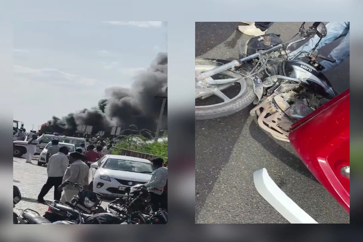 जोधपुर। जोधपुर-जैसलमेर हाईवे पर लोरड़ी गांव के पास शनिवार दोपहर हुए भीषण हादसे के बाद हालात तनावपूर्ण हो गए। एक निजी बस ने बाइक सवार को कुचल दिया, जिससे बाइक चालक की मौके पर ही मौत हो गई। हादसे के बाद गुस्साए लोगों ने बस में आग लगा दी, जिससे मौके पर अफरा-तफरी मच गई।