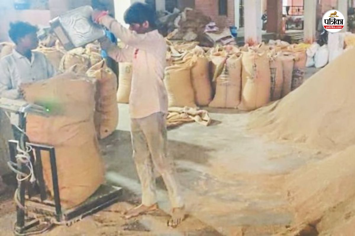 मंडी में पड़ी कृषि जिंस व काम करते लेबर। फोटो पत्रिका