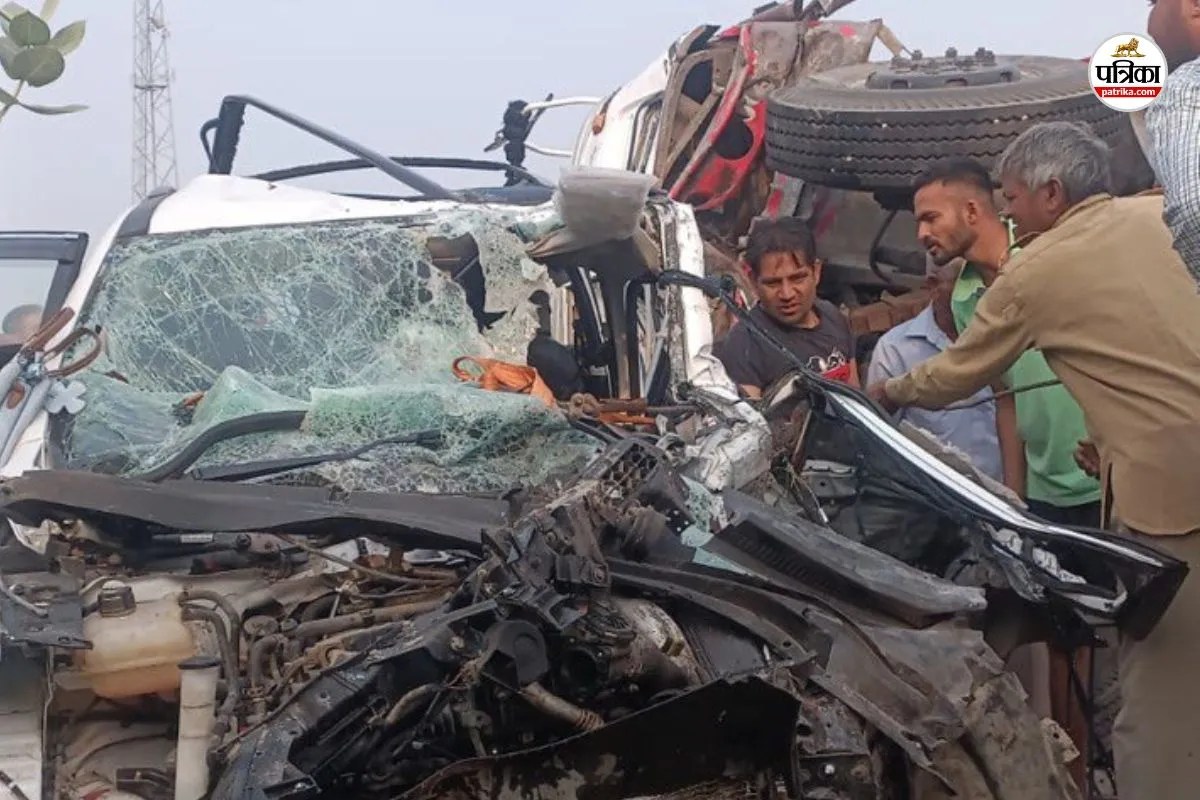 जोधपुर में बस-कार में भिड़ंत। फोटो: पत्रिका