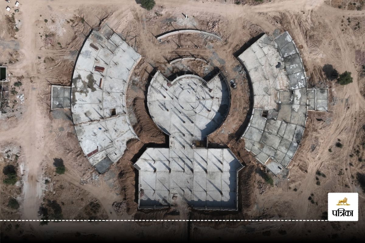 मारवाड़ मेडिकल यूनिवर्सिटी का निर्माण। फोटो : गौतम उड़ेलिया, ड्रोन सहयोग: संदीप टाक