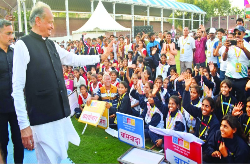 जोधपुर। मुख्यमंत्री अशोक गहलोत ने उम्मेद राजकीय स्टेडियम में प्रदेश में खेलों का महाकुंभ कहे जाने वाले राजीव गांधी ग्रामीण व शहरी ओलंपिक खेलों का राज्य स्तरीय आगाज किया। उन्होंने कहा कि खेलों में राजस्थान अब पिछड़ा नहीं, बल्कि अग्रणी राज्यों में जाना जाता है। मुख्यमंत्री गहलोत ने कहा कि खेल-खिलाड़ियों के विकास के लिए प्रदेश में खेल बजट में बढ़ोतरी की गई है। खिलाडिय़ों को सुविधाएं देने में कमी नहीं रखी है। करीब 200 खिलाड़ी आउट ऑफ टर्न नौकरी लग चुके हैं।