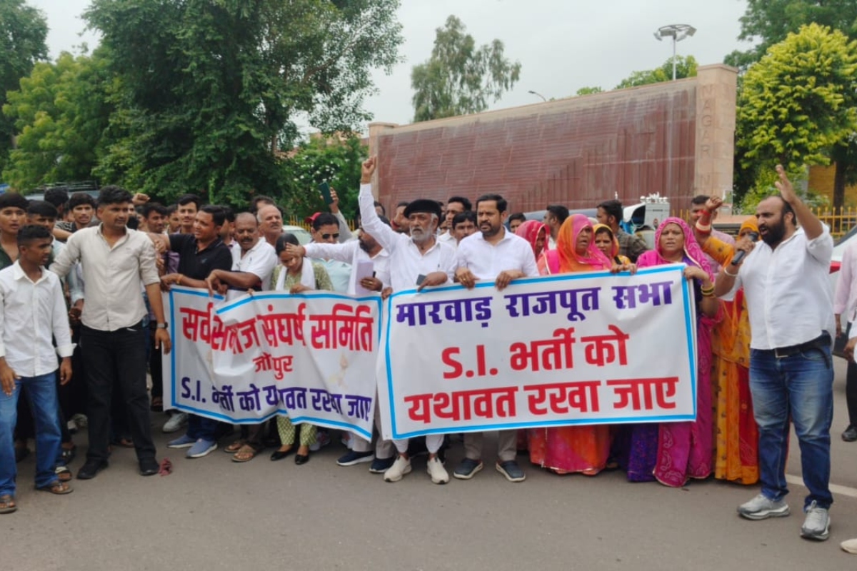 SI Bharti: राजस्थान में सब-इंस्पेक्टर भर्ती-2021 को रद्द किए जाने के विरोध में सोमवार को जोधपुर में मारवाड़ राजपूत सभा ने प्रदर्शन किया। राजपूत समाज ने जिला कलेक्टर को मुख्यमंत्री भजनलाल शर्मा के नाम ज्ञापन सौंपा। जिसमें उन्होंने सरकार से हाईकोर्ट की सिंगल बैंच के फैसले की समीक्षा करने और हाईकोर्ट की डबल बेंच या सुप्रीम कोर्ट में अपील करने की मांग की है।