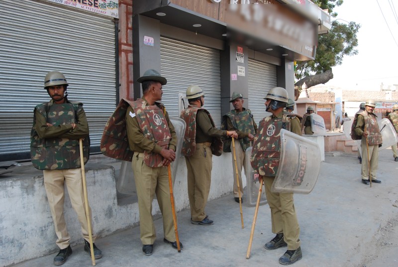 दो बार पथराव होने के बाद पुलिस उपायुक्त समीरकुमार सिंह के नेतृत्व में पुलिस ने अलग-अलग टीमें गलियों में भेजी गई। पुलिस को देख दुकानें बंद हो गई और लोग घरों में जा छिपे। सायरन बजाती पुलिस वाहनों के गश्त करने से कुछ ही देर में स्थिति नियंत्रित कर ली गई। पुलिस ने संदिग्ध युवकों को ढूंढ-ढूंढकर निकाला और थाने ले गई।