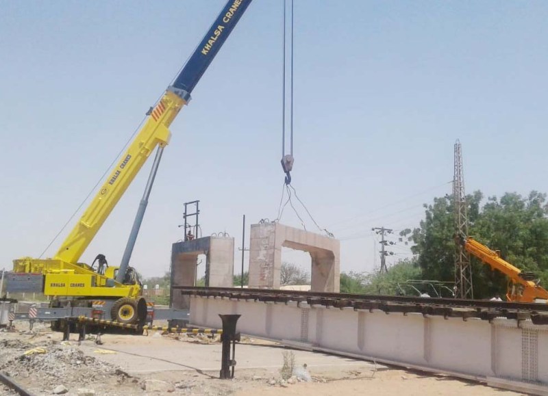 फलोदी के एलसी 58 रेलवे फाटक पर रखे गए गर्डर