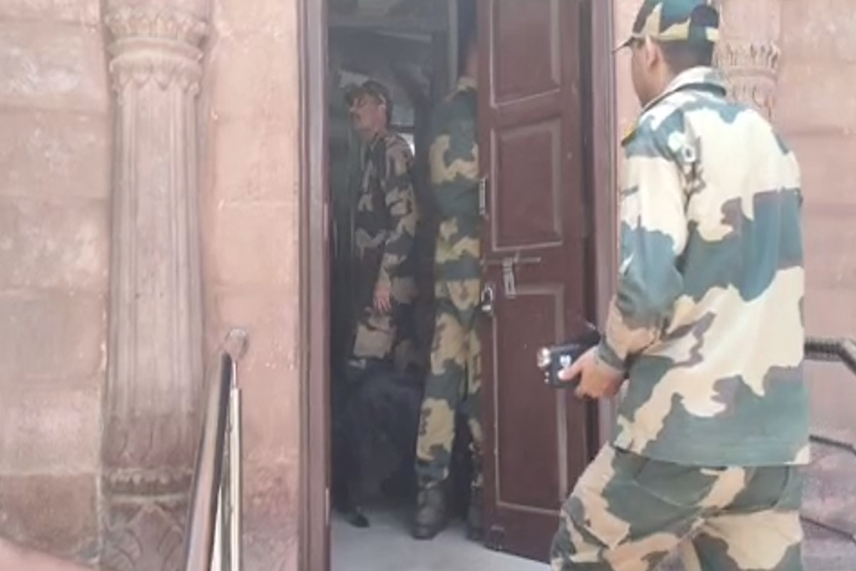 कलक्ट्रेट परिसर की जांच करते सुरक्षाकर्मी (फोटो-पत्रिका)