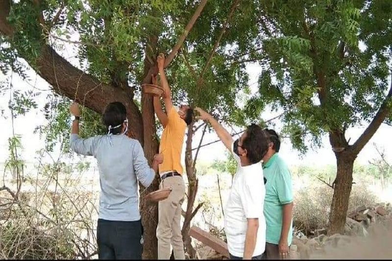 जोधपुर. कोरोनाकाल में राजस्थान पत्रिका के 'पक्षी मित्र अभियानÓ के तहत शहर के विभिन्न क्षेत्रों में नियमित रूप से पक्षियों के लिए दाना - पानी का इंतजाम करने के लिए सेवाभावी संस्थाएं व पक्षी मित्र आगे आ रहे हैं । सुदर्शन सेवा संस्थान के महामंत्री कमलेश गहलोत ने बताया कि संस्थान के अध्यक्ष रतनलाल गुप्ता, वरिष्ठ उपाध्यक्ष अशोक बाहेती, नथमल पालीवाल, महेंद्र उपाध्याय के सहयोग से किशन भैया सदन व रतन नगर क्षेत्र में पेड़ों पर पक्षियों के लिए परिंडे लगाकर नित्य सुबह व शाम पानी भरने की व्यवस्था का जिम्मा संस्थान सदस्यों को सौंपा गया। कोरोनाकाल में संस्थान की ओर से सामाजिक व चिकित्सा क्षेत्र में सेवा के अनेक प्रकल्प संचालित किए जा रहे है।