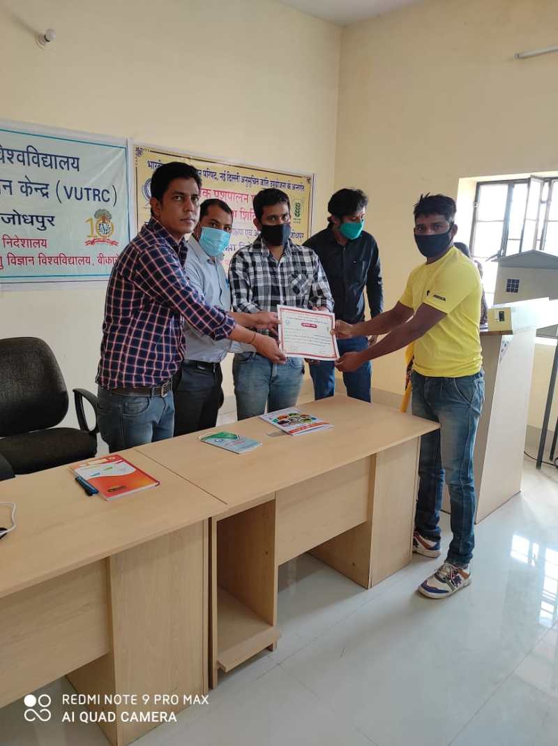 पशु चिकित्सा अधिकारी डॉ. आदित्य गोदारा ने बकरी पालन व बकरियों में होने वाली प्रमुख बीमारियों व बचाव के बारे में जानकारी दी। डॉ. अमित कुमार चोटिया ने वर्मीकम्पोस्ट तैयार करने की विधि बताई। डॉ. महेन्द्र पाल पूनिया ने पशुओं में कृत्रिम गर्भाधान के महत्व के बारे में बताया। अंत में पशुपालकों को प्रशिक्षण मार्गदर्शिका व प्रशिक्षण प्रमाण पत्र देकर सम्मानित किया गया। शिविर में 13 महिला पशुपालकों सहित 34 पशुपालकों ने भाग लिया।