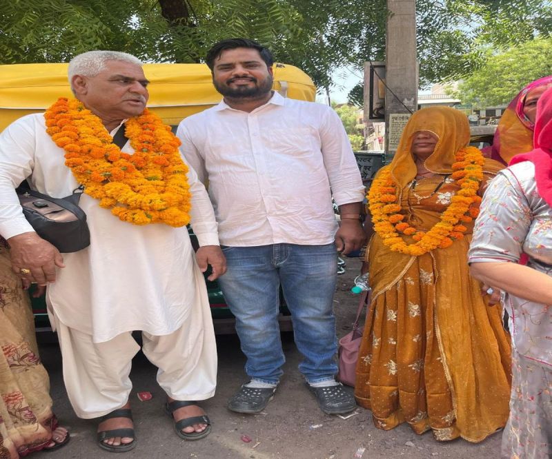 दम्पती को माला पहनाकर पाक जाने के लिए विदा करते हुए