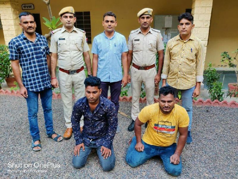 थानाधिकारी लेखराज सिहाग ने बताया कि सूंथला में गजानंद कॉलोनी निवासी बस्तीराम वैष्णव (65) गत 21 अगस्त को मण्डोर कृषि मण्डी जा रहे थे। पावटा चौराहे से कुछ आगे मिठाई दुकान के पास पहुंचने पर पीछे से बाइक सवार दो युवक आए और उन्हें रोका। मोटरसाइकिल को टक्कर मारने का आरोप लगाने लगे। युवकों ने वृद्ध को नागौरी गेट थाने ले जाने लगे। नागौरी गेट में अग्निशमन केन्द्र के पास पहुंचने पर युवकों ने मारपीट कर सोने की अंगूठी व रुपए लूट लिए थे। इस मामले में सीसीटीवी फुटेज व अन्य पहलूओं से जांच के बाद रातानाडा में एयरपोर्ट रोड निवासी विक्की टाक पुत्र रामस्वरूप वाल्मिकी और एयरफोर्स में टैम्पो स्टैण्ड के पास निवासी संदीप पुत्र राजू वाल्मिकी को गिरफ्तार किया। इनसे सोने की अंगूठी बरामद करने के प्रयास किए जा रहे हैं।