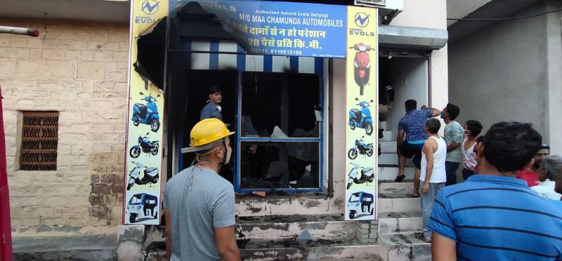 अग्निशमन सूत्रों के अनुसार मगरा पूंजला में माता का थान रोड स्थित मां चामुण्डा ऑटोमोबाइल्स इलेक्ट्रोनिक दुपहिया वाहन के शोरूम में शॉर्ट सर्किट से सुबह करीब साढे़ पांच बजे आग गई। इससे फर्नीचर के साथ ही स्टॉक करके रखे दुपहिया वाहनों को चपेट में ले लिया। बैटरी व इन्वर्टर भी जलने लगे। दुपहिया वाहनों के चपेट में आने से आग की लपटें तेज होने लगीं। धुएं के साथ आग की लपटें बाहर निकलने पर आस-पास के लोगों ने पुलिस को सूचना दी। मण्डोर स्थित अग्निशमन केन्द्र से चार और नागौरी गेट व शास्त्रीनगर स्थित अग्निशमन केन्द्र से एक-एक दमकलें मौके पर पहुंचीं। शोरूम मालिक शुभम परिहार को भी मौके पर बुलाया गया। शोरूम खुलवाते ही आग की लपटें एकबारगी तेज होने लग गईं। काफी मशक्कत से आग पर काबू पाया। तब तक लाखों रुपए के २५-३० दुपहिया वाहन, फर्नीचर, इन्वर्टर आदि जल गए।