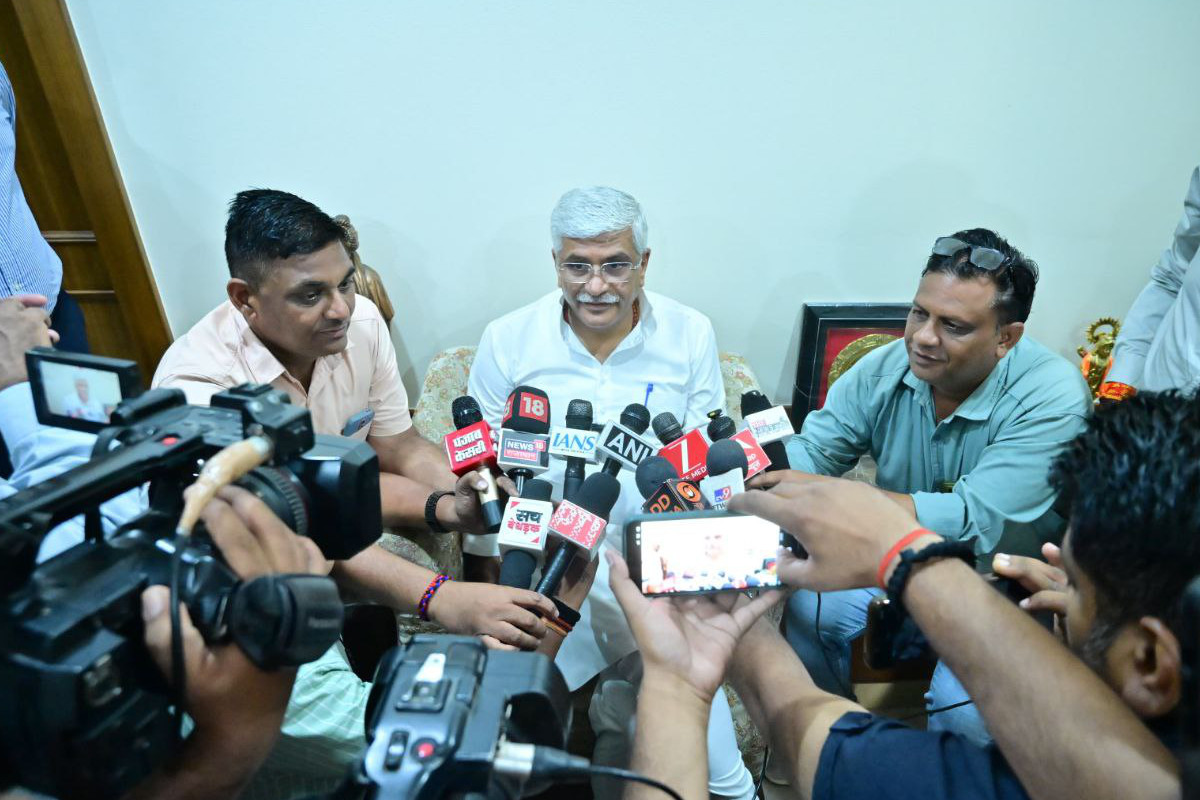 मीडिया से बात करते मंत्री गजेन्द्र सिंह शेखावत। फोटो- पत्रिका नेटवर्क
