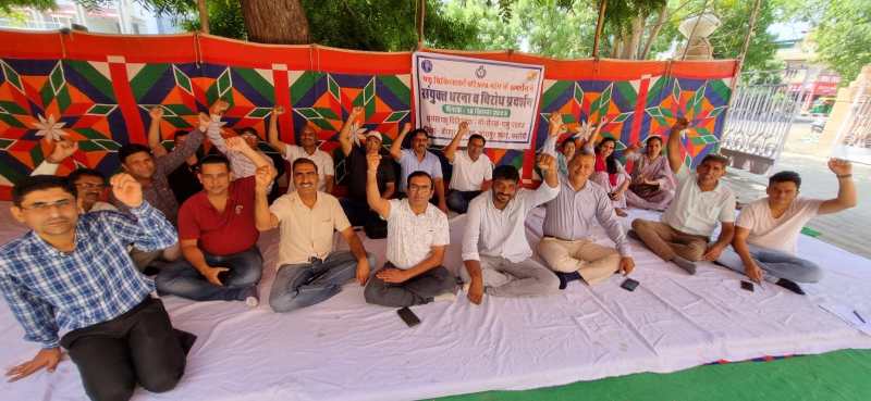 जोधपुर. रातानाडा स्थित पशुपालन विभाग कार्यालय के बाहर धरने पर बैठे वेटनरी डॉक्टर।
