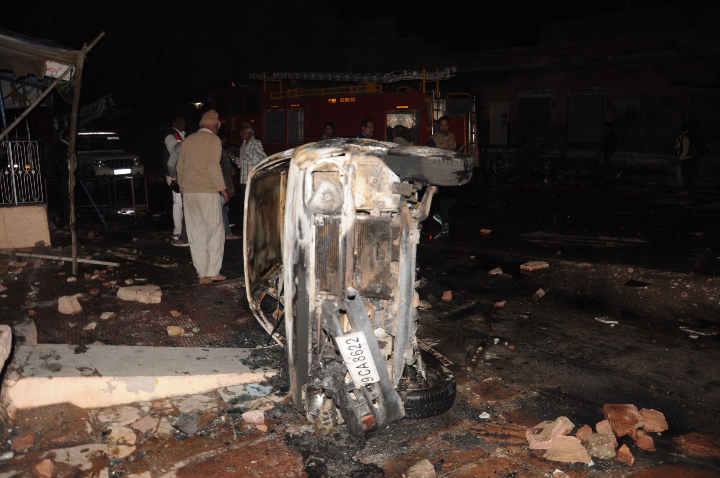 उपद्रवियों ने रूपावतों का बास में घर के बाहर खड़ी एक कार और सामने दुकानों के बाहर खड़े चार दुपहिया वाहनों को फूंक दिया। इतना ही नहीं, आर्य समाज के भवन के पास दो मोटरसाइकिलों का जला दिया गया। कुछ ही दूरी पर दो कार, लोडिंग टैक्सियों में भी जमकर तोडफ़ोड़ की गई। यहां तक वहां खड़ी एक खटारा कार के भी शीशे चटका दिए।