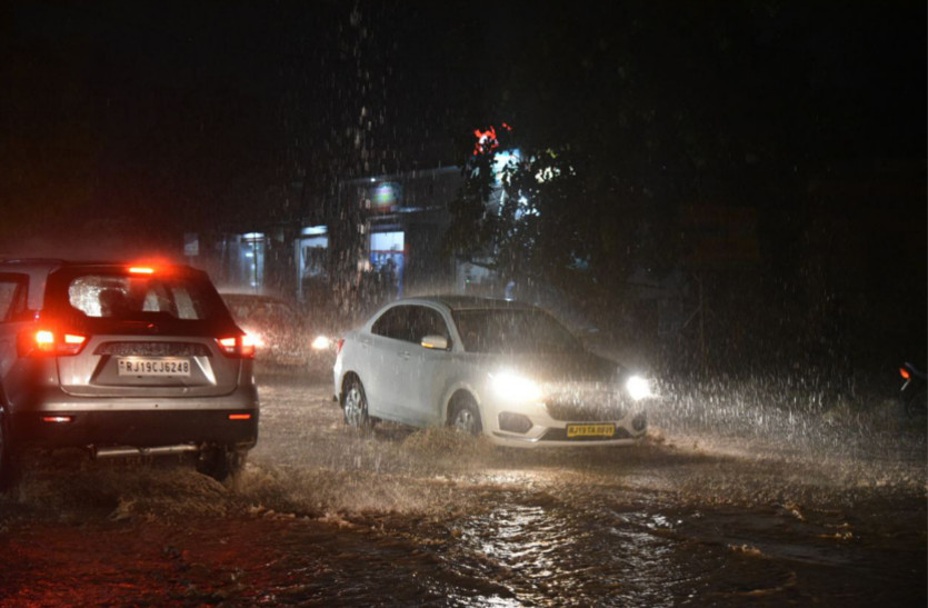 जोधपुर। दिनभर की तेज उमस के बाद आखिरकार शुक्रवार रात को जोधपुर शहर सहित क्षेत्र में मेघ बरस (Heavy Rain Alert) पड़े। बादलों की गर्जना, बिजली की चकाचौंध के साथ कभी तेज तो कभी मध्यम गति से पानी बरसा। तेज बारिश से सड़कें नदियां बन गई। कई जगह दो से तीन फीट तक पानी बहने लगा। डिवाइडर पानी में डूब गए। मौसम विभाग के अनुसार अगले एक सप्ताह तक बारिश (Heavy Rain Alert) का मौसम बना रहेगा।