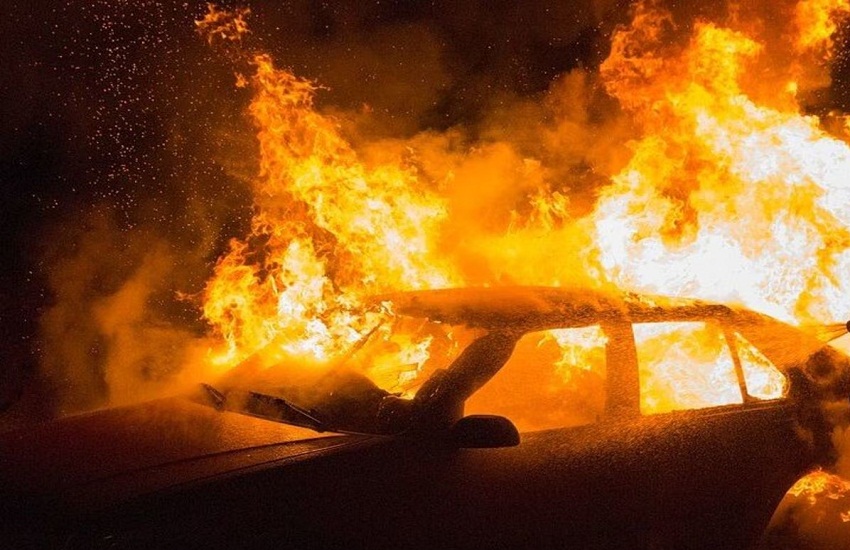 चलती कार में लगी आग