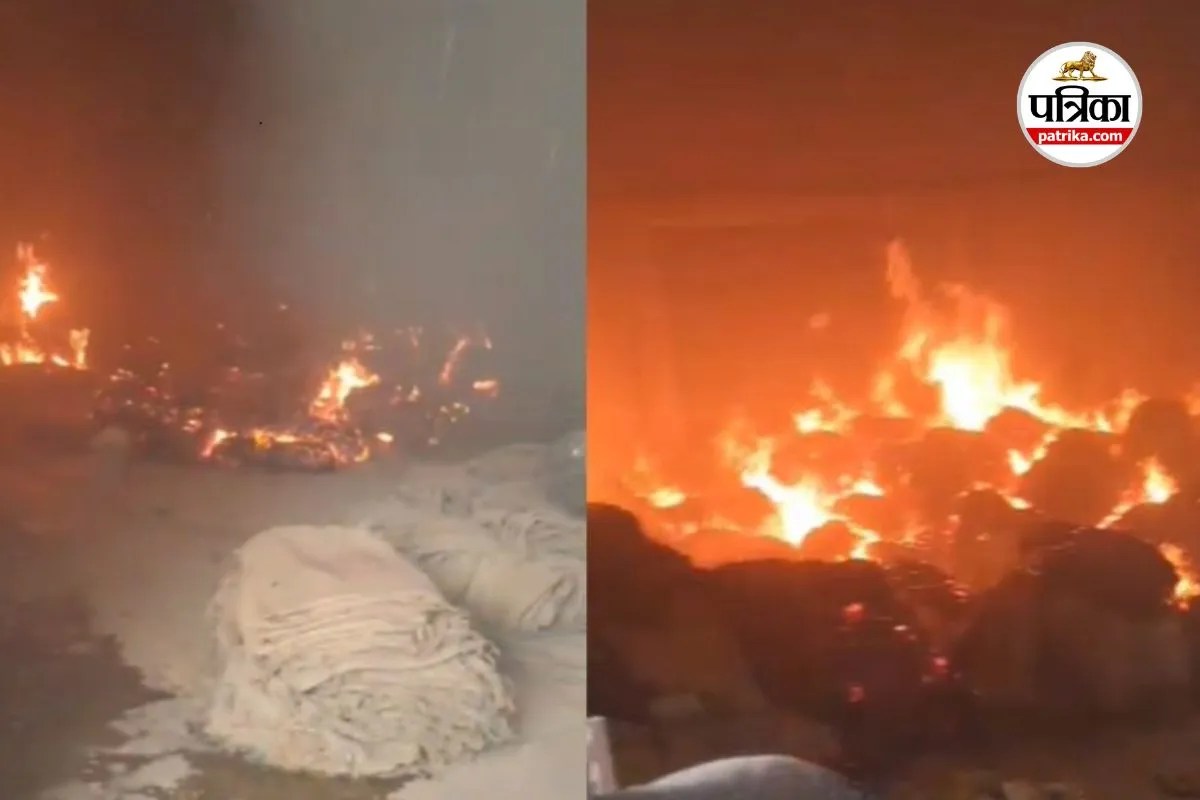 राइस मिल के गोदाम में लगी भीषण आग (photo source- Patrika)