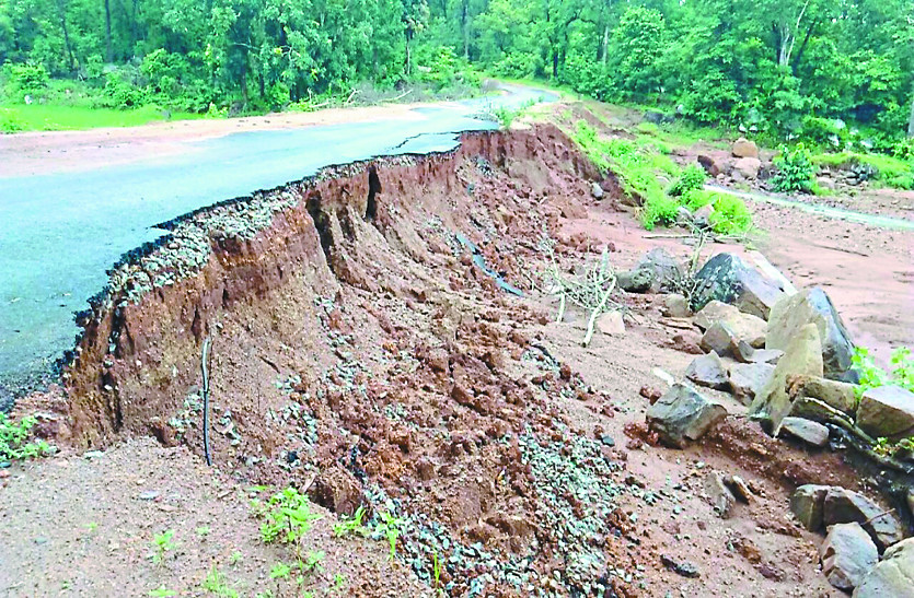 फॉरेस्ट हद में बन रही सडक़ में पहाड़ की तरफ मलबा को रोकने के लिए न तो बेस बनाया गया न ही पहाड़ी से गिरने वाले पानी को डायवर्ड करने के लिए नालियों का निर्माण कराया गया। बारिश का पानी जैसे से पहाड़ से नीचे उतर रहा वैसे ही सडक़ को बहा ले जा रहा है। जगह-जगह आधी सडक़ पहली ही बारिश में बह गई है। प्रधानमंत्री ग्राम सडक़ की निगरानी करने वाले विभाग के जिम्मेदारों की अनदेखी से सडक़ नष्ट होने लगी है। जबकि पत्रिका ने अपने आंचलिक अंक में 2 अगस्त 2017 को ही घटिया सडक़ निर्माण की खबर प्रमुखता से प्रकाशित कर चुका है। विभाग के जिम्मेदार अधिकारियों की अनदेखी से करोड़ों के बजट से बनी सडक़ एक साल में ही टूटने लगी है। पीएम सडक़ निर्माण एजेंसी के तौर पर निगरानी करने वाले अफसरों की सिर्फ एक दलील है कि सडक़ पांच साल की गारंटी में हैं। ऐसे में सवाल खड़ा हो रहा कि गारंटी की आड़ में घटिया निर्माण पर पर्दा डाल रहे हैं।