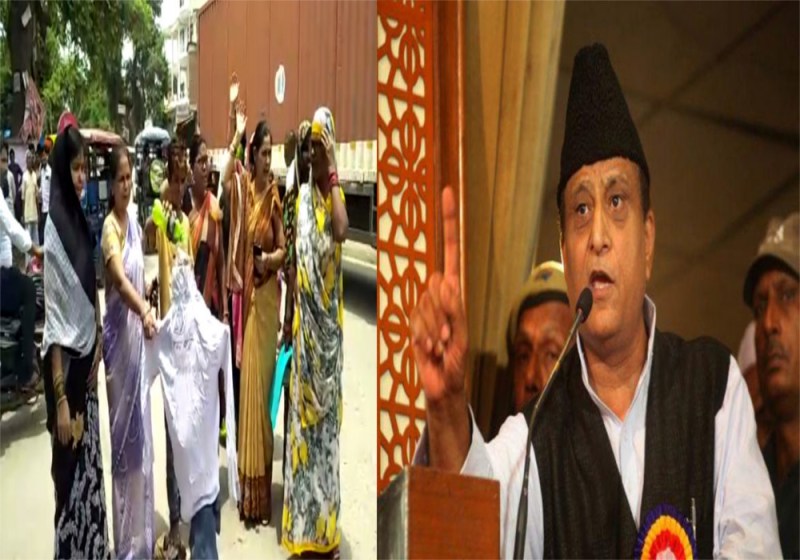 महिलाओं ने फूंका आजम का पुतला