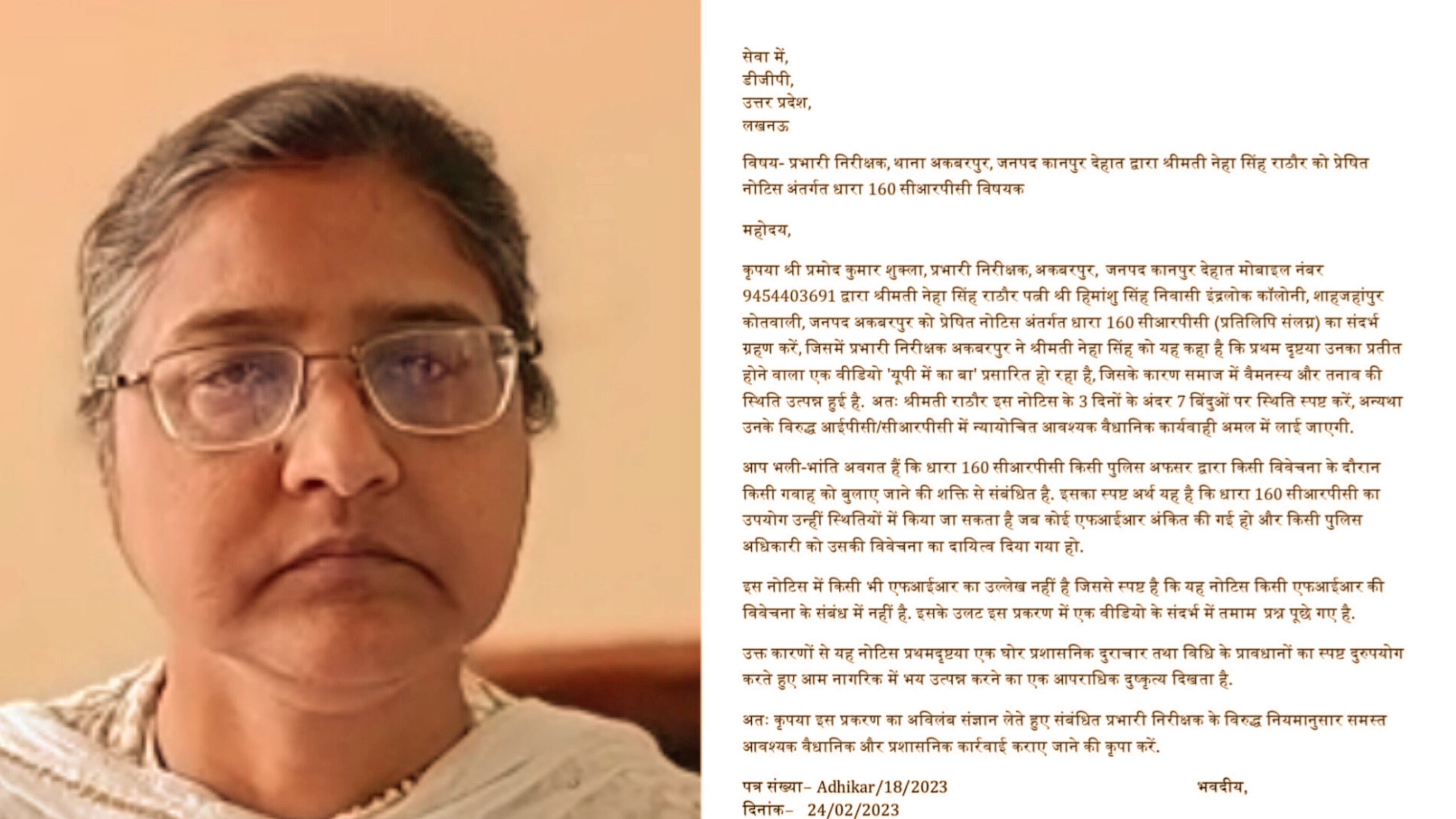 Neha Singh Rathore: अधिकार सेना के लीगल विंग ने कानपुर देहात पुलिस द्वारा कवयित्री नेहा सिंह राठौर को धारा 160 सीआरपीसी में भेजे गए नोटिस को गैर-क़ानूनी बताया है।