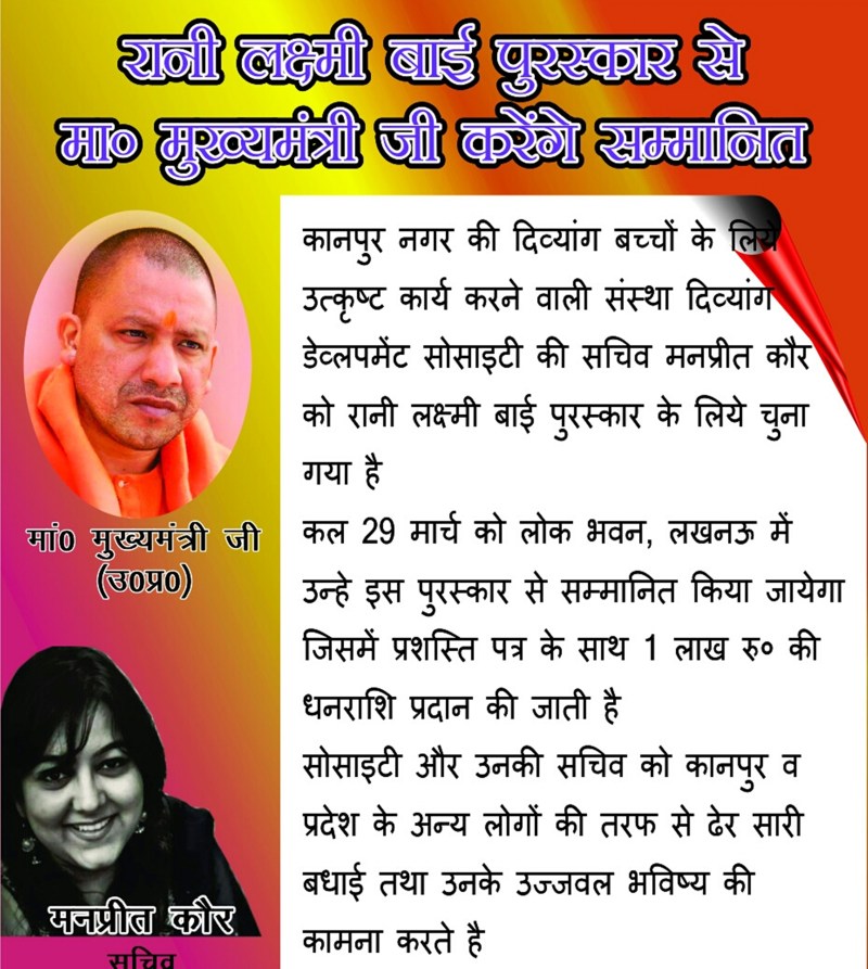 कानपुर। वह पढ़ाई में अव्वल थी और अपने क्लास में हर वर्ष टॉप करती थी। स्नातक के बाद दिल्ली से एमबीए पास किया और एक सरकारी बैंक में नौकरी मिल गई। ट्रेन से घर वापस आ रही थी, तभी उनकी नजर भीख मांग रहे दिब्यांग बच्चों पर पड़ी। महिला को यह नगुजरा दिखा और उसने इन्हें हुनरमंद बनाने की ठान ली और दिब्यांग बच्चों के लिए एक स्कूल की अधारशिला रख दी। सात साल से वह दिब्यांग बच्चों को निशुल्क में शिक्षा दे रही हैं और उन्हें स्थानीय लोग द्रोणाचार्य दीदी के नाम से पुकारते हैं। कानपुर के इस द्रोणाचार्य के कार्य की बात सीएम तक पहुंती तो उन्होंने इन्हें पुरूस्कार देने की घोषणा की। दर्शनपुरवा निवासी निवासी मनप्रीत कौर अपने दिग्यांग बच्चों को लेकर गुरूवार को लखनऊ के लिए निकल गई हैं, वहां सीएम योगी आदित्यनाथ रानी लक्ष्मी बाई पुरूस्कार देकर उनका सम्मानित करेंगे।